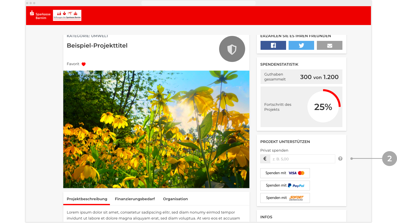 Geben Sie den Betrag ein, mit dem Sie das Projekt unterstützen möchten. Füllen Sie anschließend das Formular mit Ihren Kontaktdaten aus und klicken dann auf den Spendenbutton. Sie werden damit auf die Seite des Zahlungsanbieters weitergeleitet. Dort werden Sie durch den Bezahlvorgang geführt.