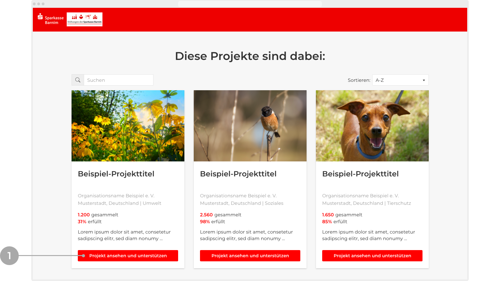 Suchen Sie sich ein Projekt von der Projektübersichtsseite aus, das Sie unterstützen möchten. Klicken Sie dazu auf den Button „Projekt ansehen und unterstützen“. Damit gelangen Sie auf die Detailseite des Projekts.